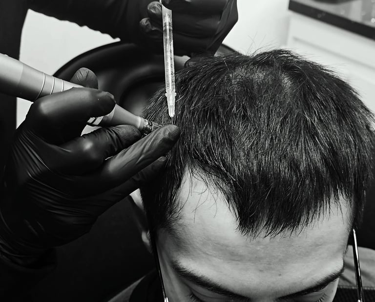 Tratamiento para la alopecia androgénica, efluvio telógeno y alopecia areata a través de péptidos de crecimiento capilar y láser de baja potencia.